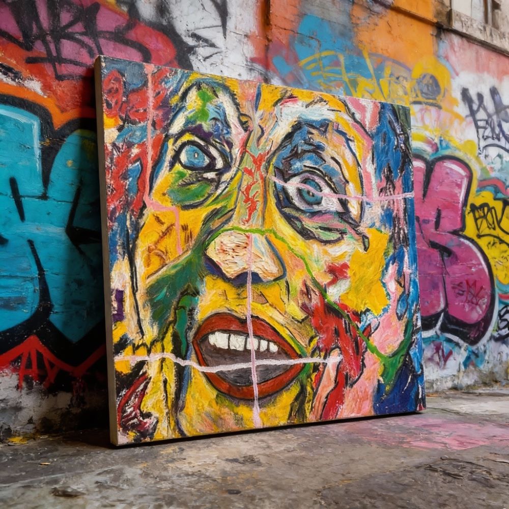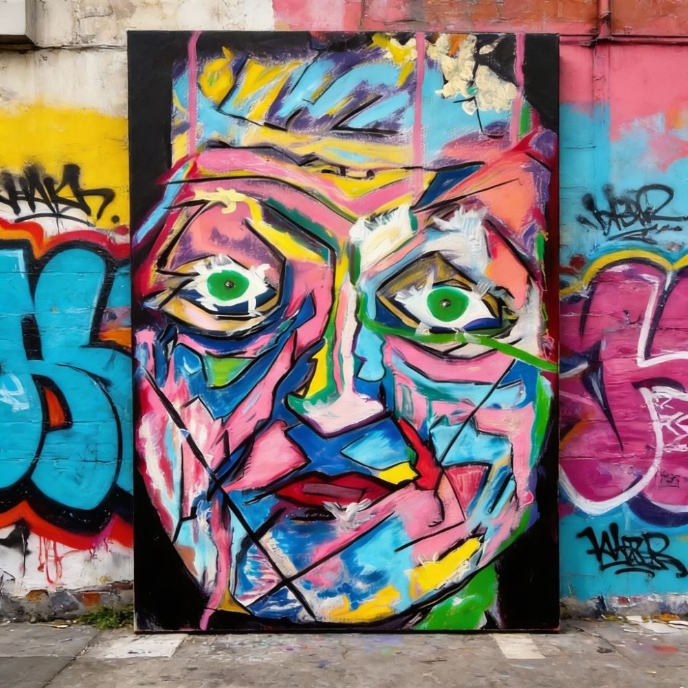 ClemK`s wild freestyle portraits of MOTHER EARTH reflect an ambitious film that he was unable to make during his film career. “Mother Earth in intensive care – Let's take her out.” Now he has painted it. A garishly battered creature looks down on us. Lamenting, chaotic, yet full of kindness, gentleness, and warmth. A cry of outrage.